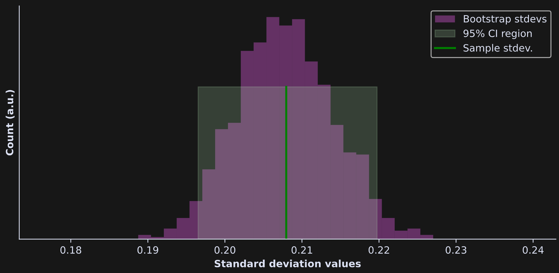 Any characteristic you can calculate, you can get CIs on. The figure below shows the same CI procedure as above, using the same dataset, but for the standard deviation instead of the average.