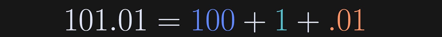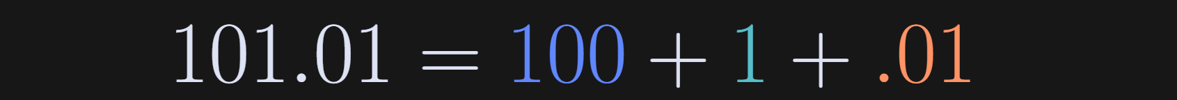 OK, I admit that for this example, the three smaller pieces don’t exactly reveal any hidden secrets in the number 101.01, but we have decomposed one number into three simpler pieces. And that’s the idea.
