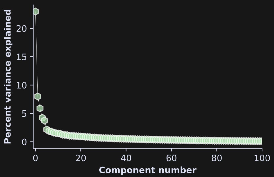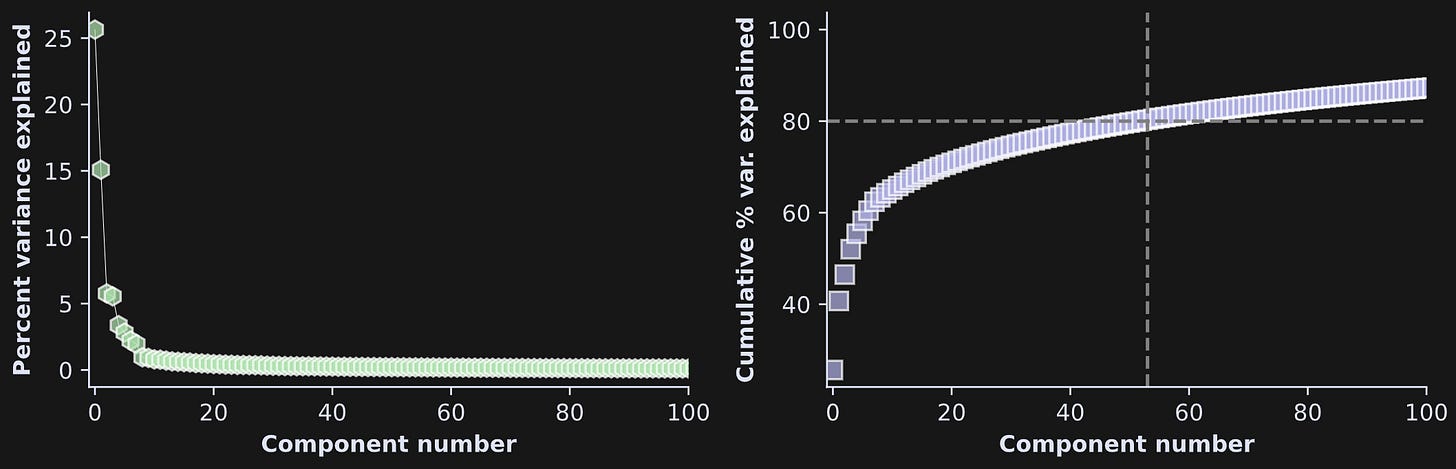 Before showing the results, I want to show a scree plot and cumulative variance explained, same as in Demo 0 but for real data, from transformer block 5 (out of 48).