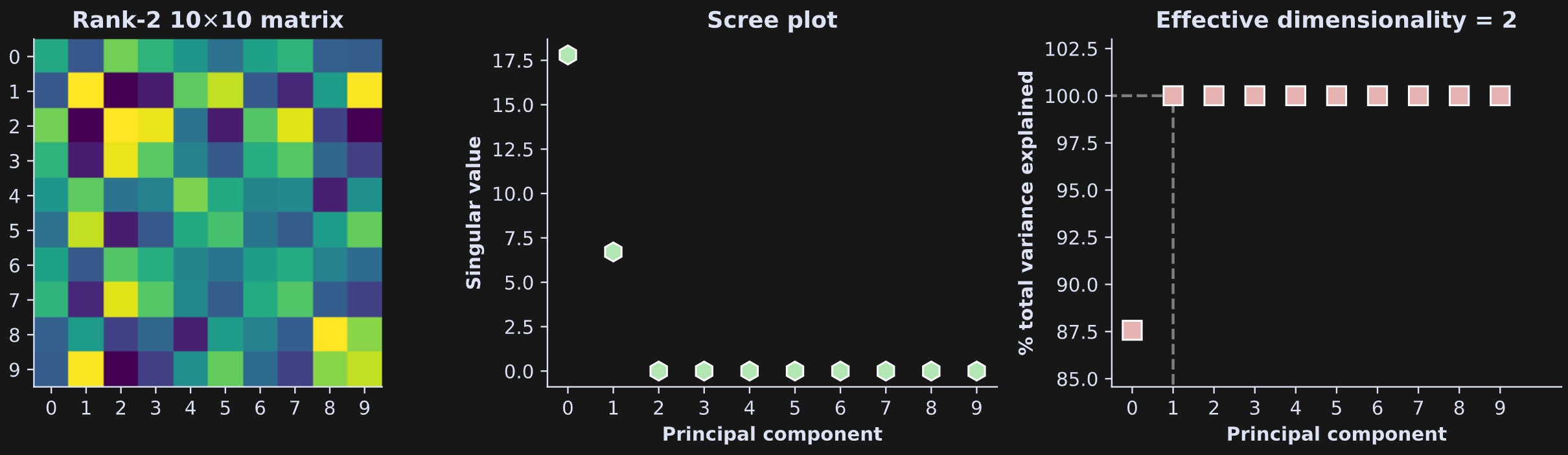In this example, the effective dimensionality equals the rank (2). That is a trivial result in this case.