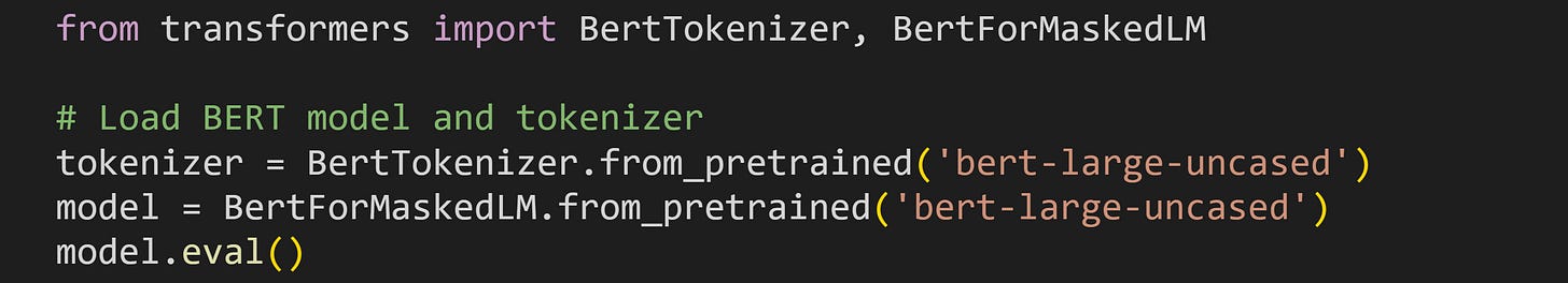 Unlike in Demo 1, I’m calling the tokenizer’s built-in mask token. That’s actually the same as writing out [MASK] but is a bit safer for code- and model-adaptations.