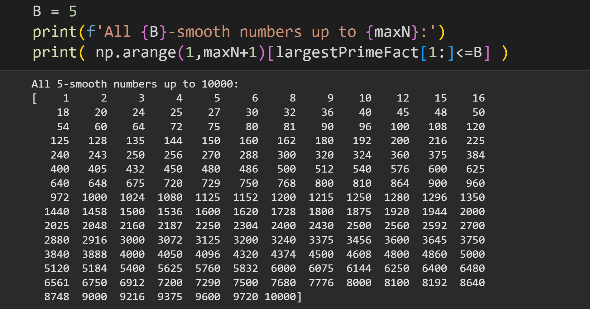 Those are all the 5-smooth numbers up to 10,000. We can check that against the following website: