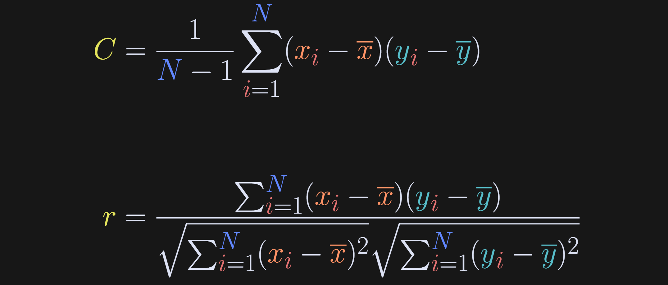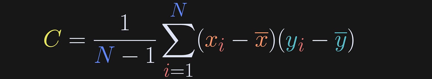 In this section, I will show you the formula for covariance and explain details about how to interpret it, and then the next several sections will help you build intuition through Python code demos with examples and visualizations.