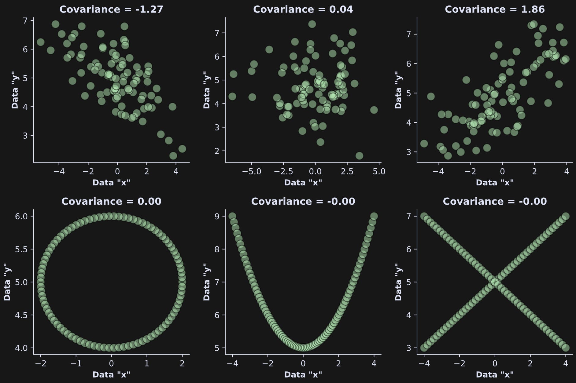 Covariance — the topic of this post — is a linear measure, and therefore, cannot reveal nonlinear relationships. For that, you need mutual information, which is the topic of Post 2 in this series.